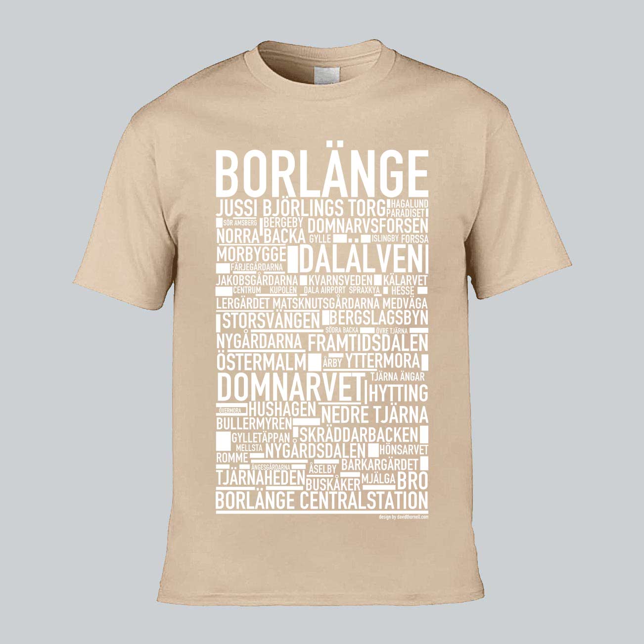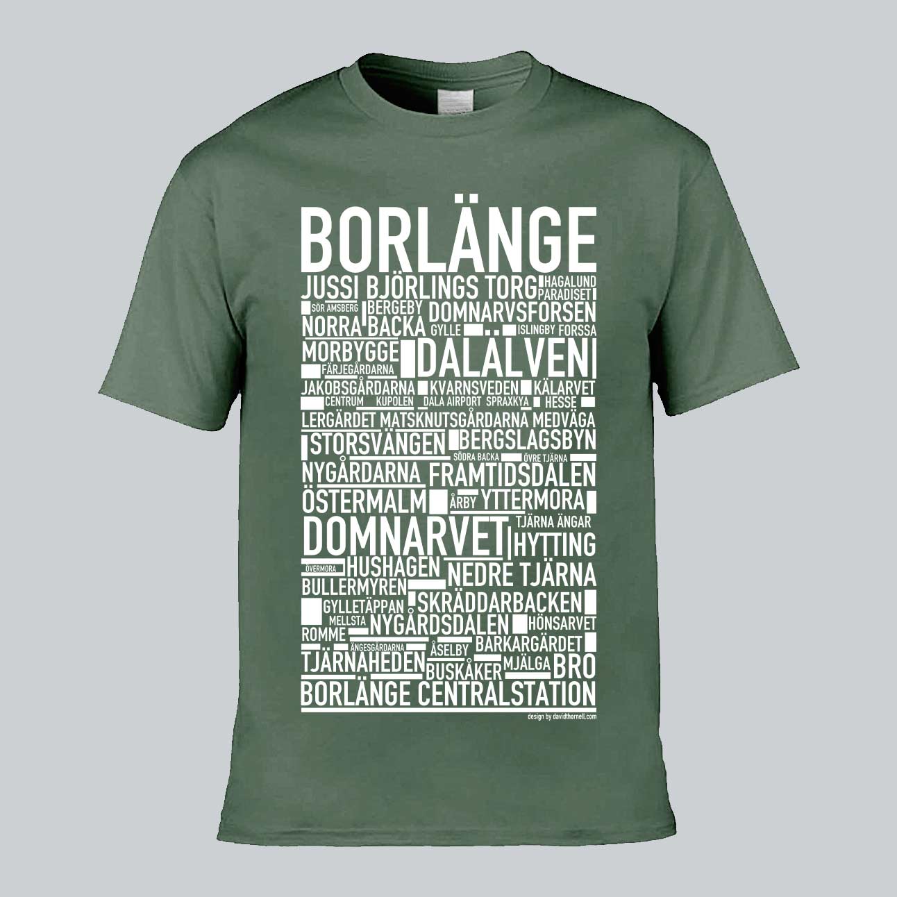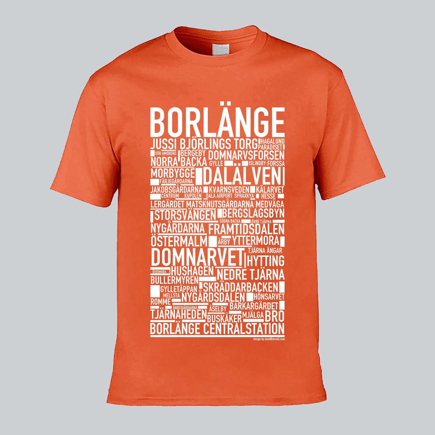 Den ikoniska T-shirten med texten "BORLÄNGE" och namn på platser från denna dalastad med puls, kultur och industrihistoria. Denna stilrena T-shirt ger en unik touch till din garderob och låter dig stolt visa upp din kärlek till Borlänge. Tillverkad i mjuk, högkvalitativ bomull för en behaglig känsla hela dagen.