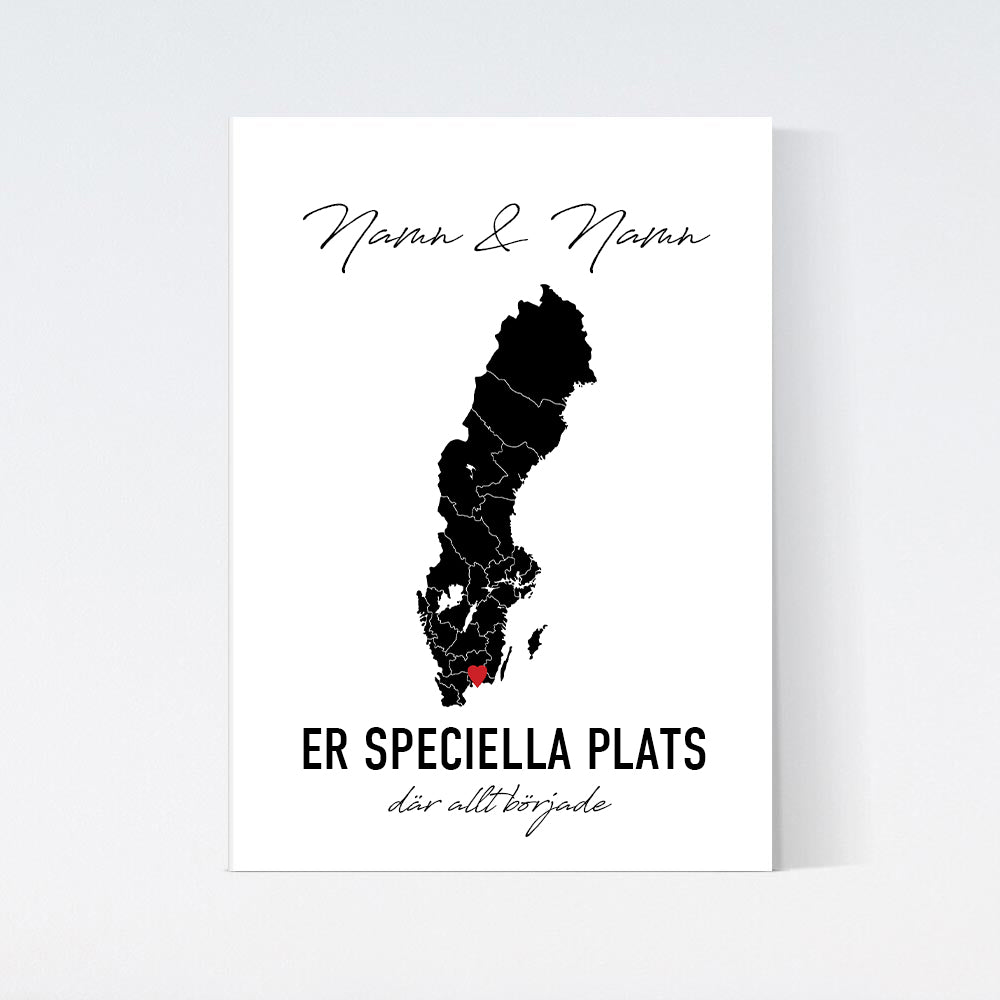 Fira er kärlek med en personlig poster där ni själva väljer er stad och vi markerar den med ett rött hjärta. Lägg till era namn och få en unik hyllning till platsen där er historia tog sin början. Denna eleganta och romantiska poster blir inte bara en vacker detalj i hemmet, utan också en tidlös gåva som visar på er kärlek och gemensamma minnen. Perfekt för par som vill bevara och visa upp sin speciella plats på ett stilrent och personligt sätt. Postern tillverkas på beställning på högkvalitativt papper och har en vit kant som snyggt ramar in motivet.
