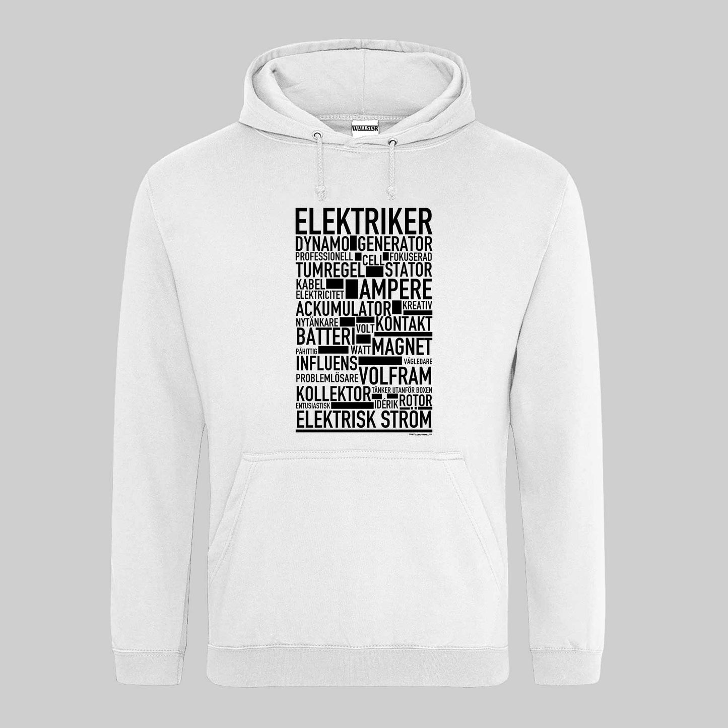 En stilren hoodie med texten 'ELEKTRIKER'. Denna hoodie är perfekt för att sprida en känsla av expertis och problemlösning och är ett måste för alla elektriker. Visa din passion för att få saker att fungera och bär den med stolthet, oavsett om du är på jobbet eller ute i vardagen. Tillverkad i mjuk, högkvalitativ bomull för en behaglig känsla hela dagen.