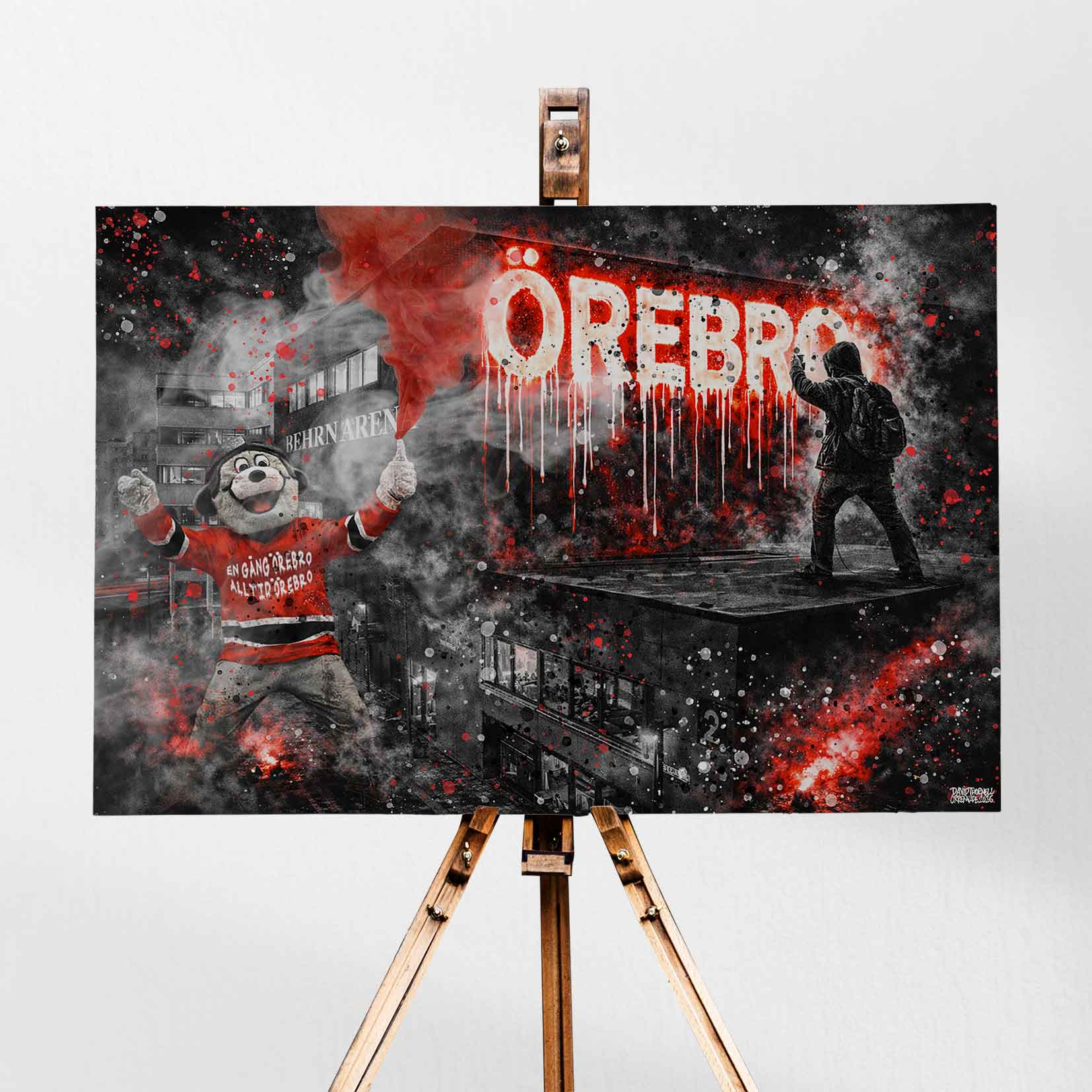 Upplev den ikoniska känslan av ishockey i en stad där lojalitet och passion aldrig sviker. Den här canvastavlan fångar energin från arenans ljus, publikens förväntan och den intensiva atmosfären när varje byte betyder allt. “en gång Örebro, alltid Örebro” genomsyrar hela upplevelsen och speglar stoltheten och tillhörigheten – tolkad i en rå och urban street art-inspirerad estetik med stark attityd.