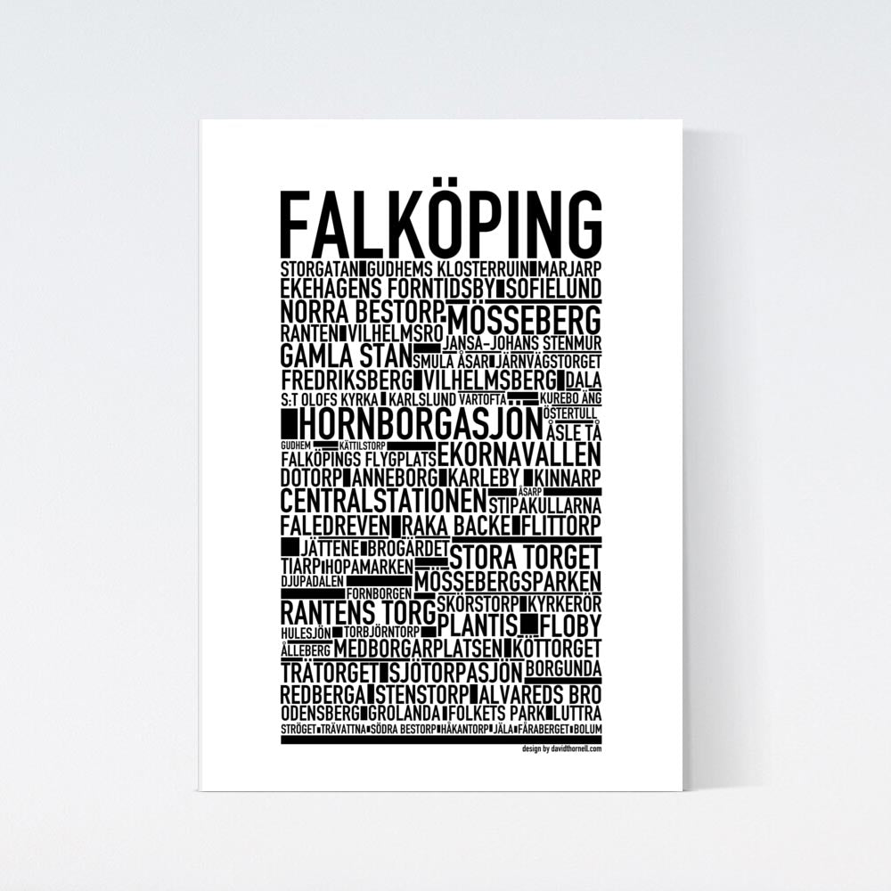 Den ikoniska stadspostern "FALKÖPING". Med sin eleganta svartvita design fångar den kärleken till Falköping och blir en stilren inredningsdetalj som passar perfekt i ditt hem. Postern gör sig lika bra i hallen, vardagsrummet eller sovrummet. Den vita kanten ramar in motivet på ett smakfullt sätt. Varje poster tillverkas på beställning för att säkerställa högsta kvalitet och en exklusiv känsla.