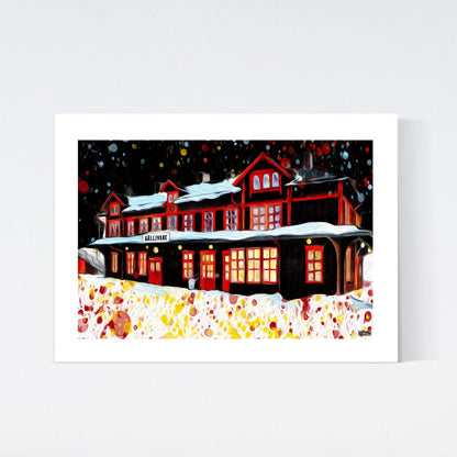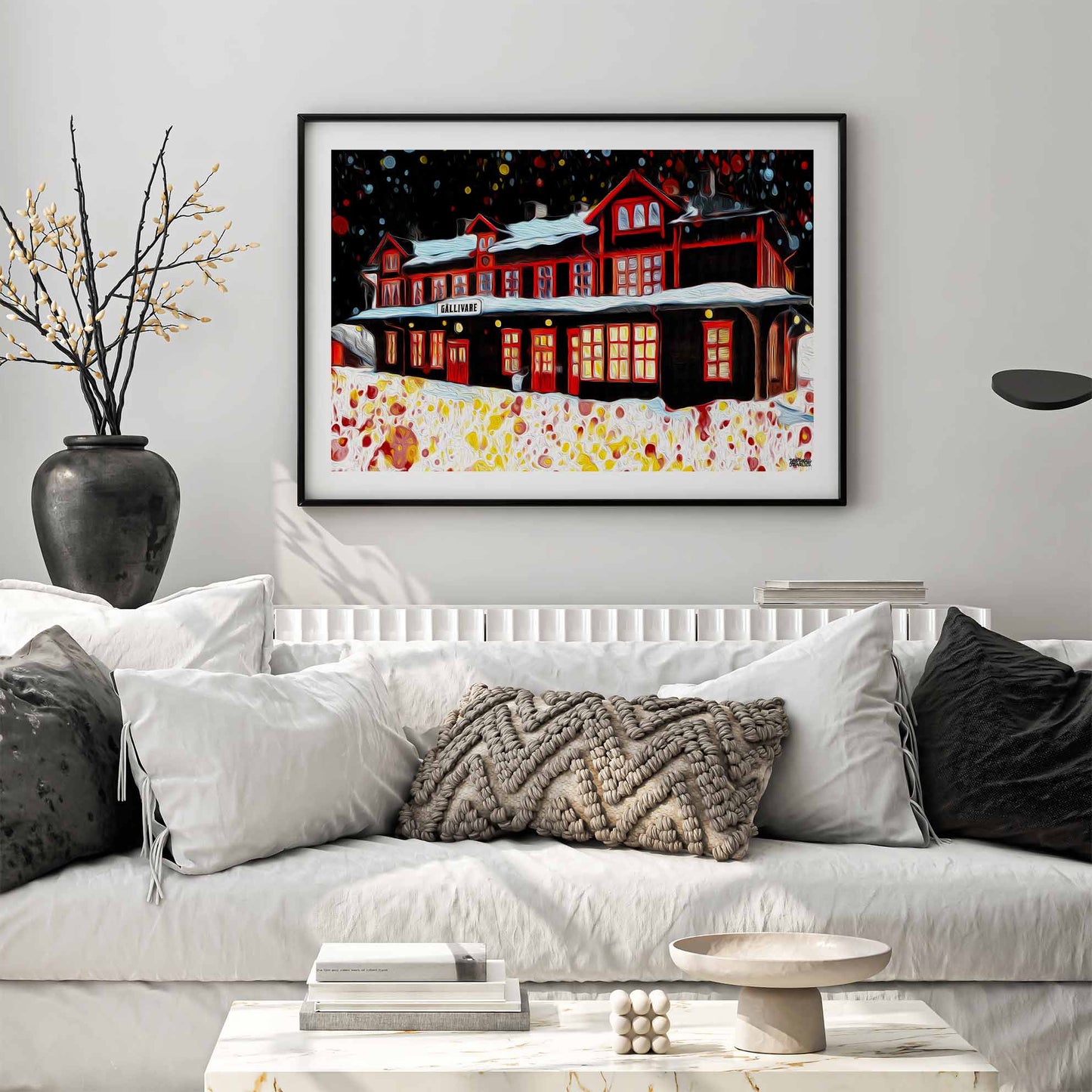 En ikonisk poster av Gällivare tågstation som fångar den magiska känslan av tågstationen i ett drömmigt vinterlandskap. En stilren tavla som för tankarna till norrländsk stillhet och snöklädda vidder. Perfekt att hänga i hallen, vardagsrummet eller sovrummet och en vacker hyllning till Gällivare som skapar en personlig och stämningsfull atmosfär i ditt hem eller din fjällstuga. Varje poster tillverkas på beställning för att säkerställa högsta kvalitet och en exklusiv känsla.