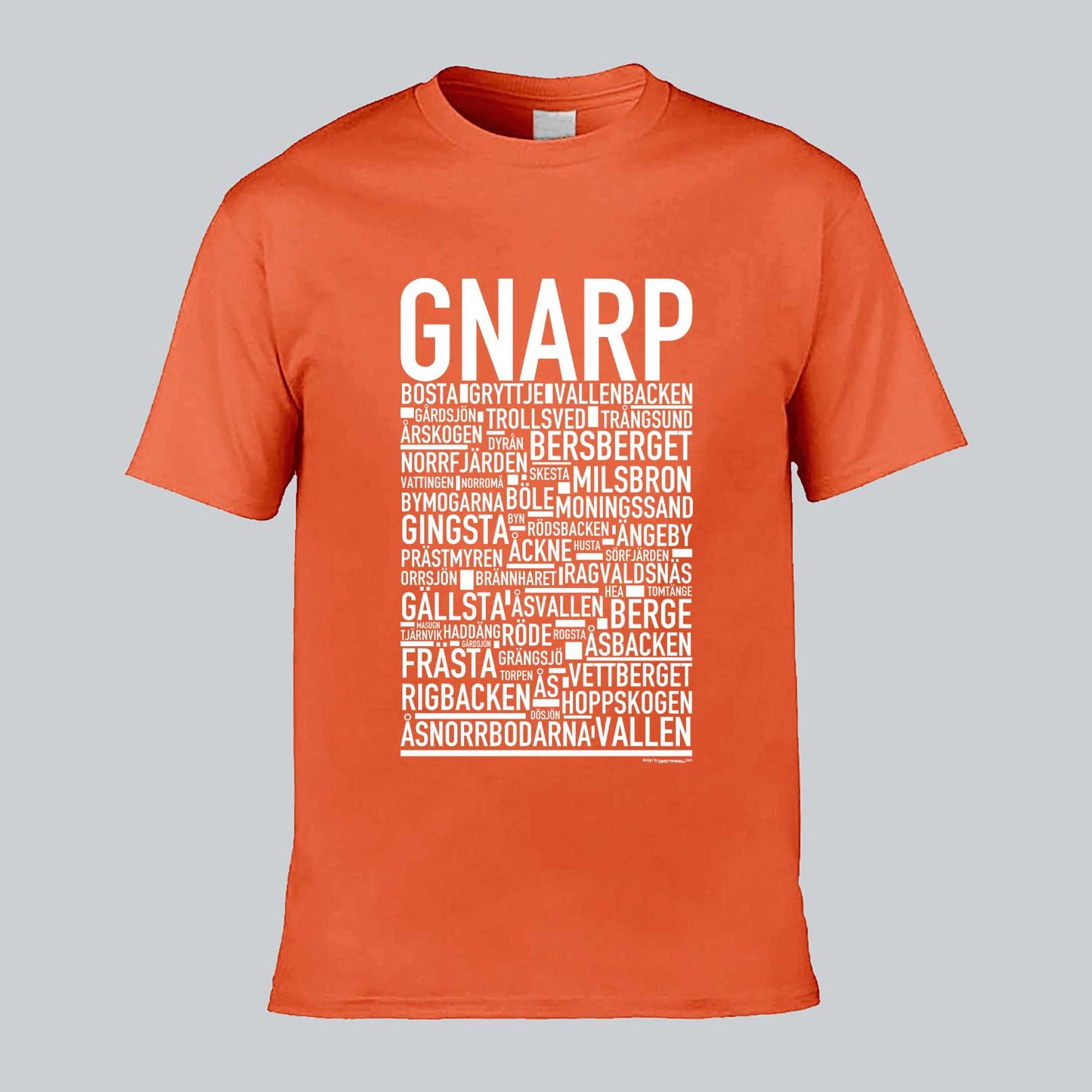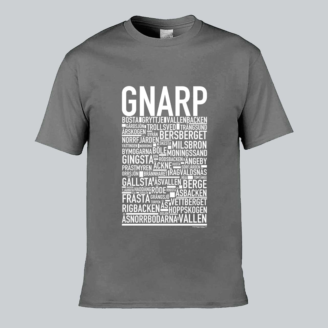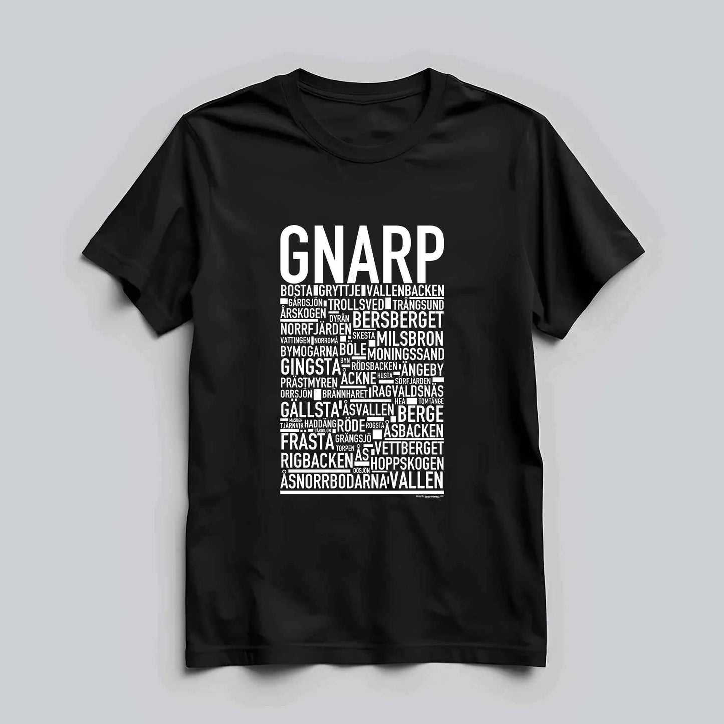 Den ikoniska T-shirten med texten "GNARP" och namn på platser från denna charmiga ort i Hälsingland – känd för sina vidsträckta skogar, sjöar och en stark lokal gemenskap som genomsyrar bylivet. En stilren T-shirt som låter dig bära med dig känslan av Gnarp – där naturens lugn och gemenskap möts i hjärtat av Hälsingland. Tillverkad i mjuk, högkvalitativ bomull för en skön och behaglig känsla hela dagen.