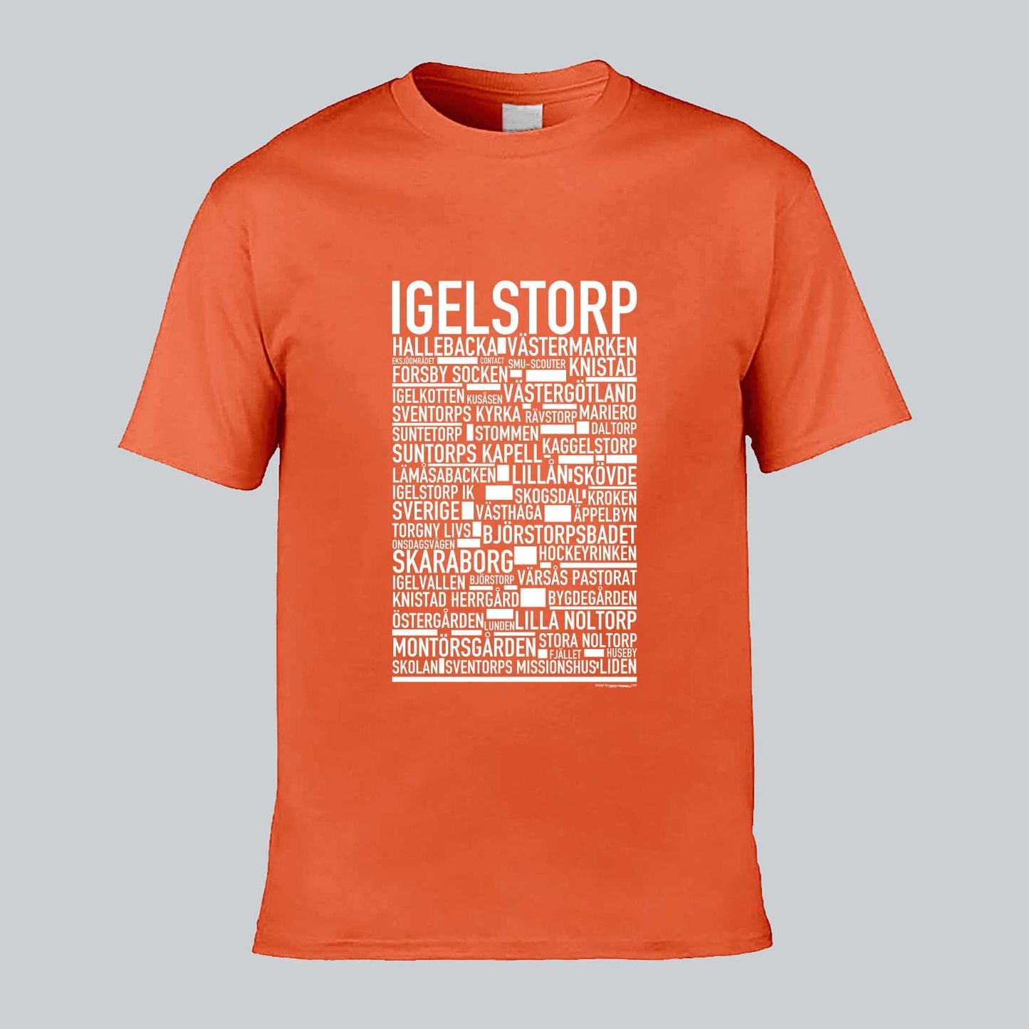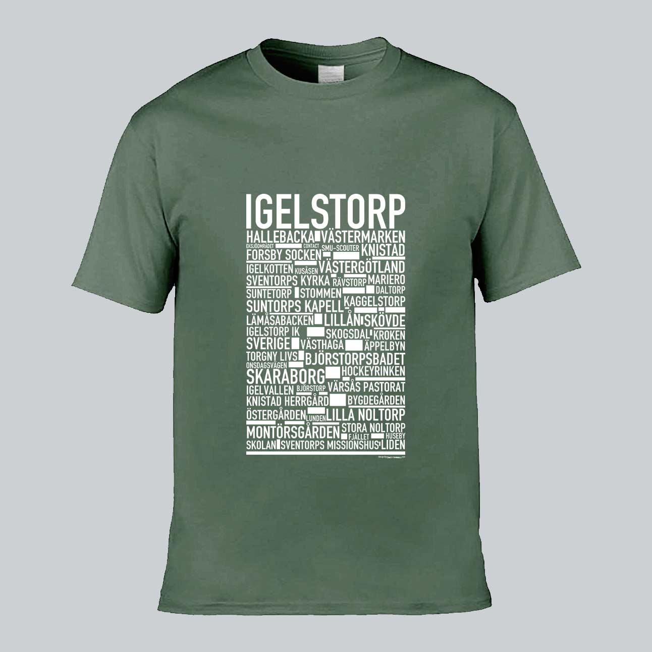 Den ikoniska T-shirten med texten "IGELSTORP" och namn på platser från denna lantliga och charmiga ort i Västergötland – känd för sitt lugna tempo, öppna fält och den starka bygemenskapen mitt mellan landsbygd och stad. En stilren T-shirt som låter dig bära med dig känslan av Igelstorp – där tradition, närhet till natur och vardaglig trygghet möts. Tillverkad i mjuk, högkvalitativ bomull för en skön och behaglig känsla hela dagen.