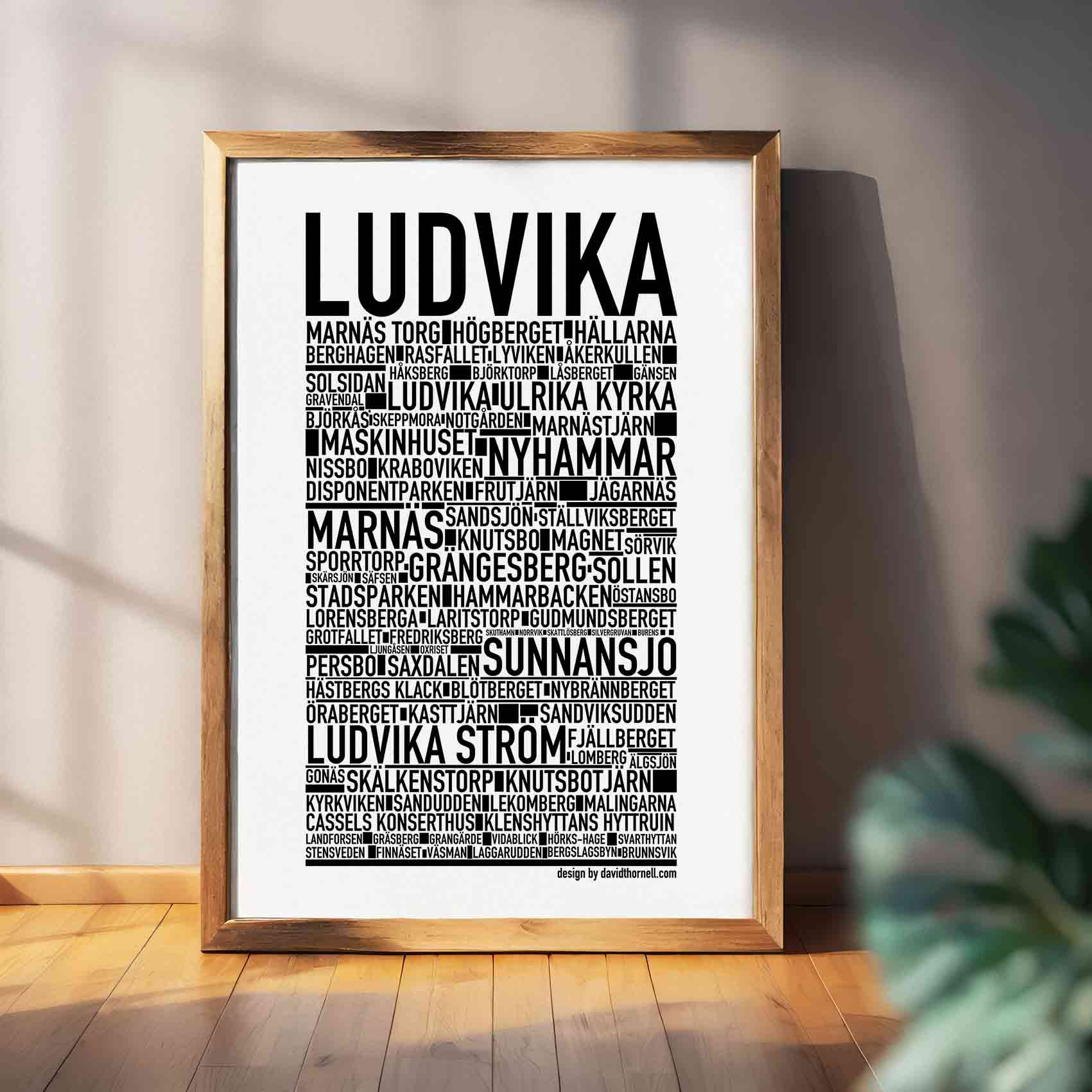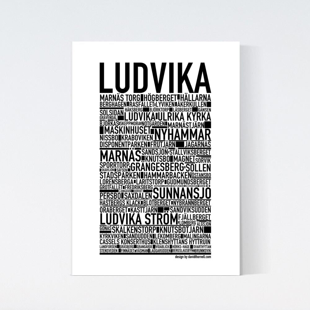 Den ikoniska stadspostern "LUDVIKA". Med sin eleganta svartvita design fångar den kärleken till Ludvika och blir en stilren inredningsdetalj som passar perfekt i ditt hem. Postern gör sig lika bra i hallen, vardagsrummet eller sovrummet. Den vita kanten ramar in motivet på ett smakfullt sätt. Varje poster tillverkas på beställning för att säkerställa högsta kvalitet och en exklusiv känsla.