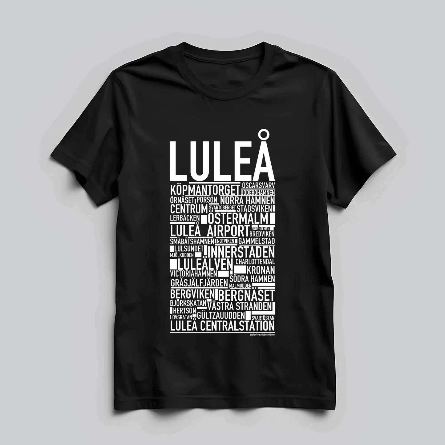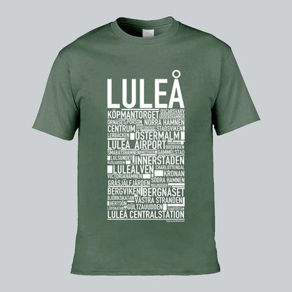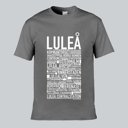 Den ikoniska T-shirten med texten "LULEÅ" och namn på platser från denna norrländska kuststad, känd för sin vackra skärgård, moderna teknik och unika arktiska charm. Denna stilrena T-shirt ger en unik touch till din garderob och låter dig stolt visa upp din kärlek till Luleå. Tillverkad i mjuk, högkvalitativ bomull för en behaglig känsla hela dagen.