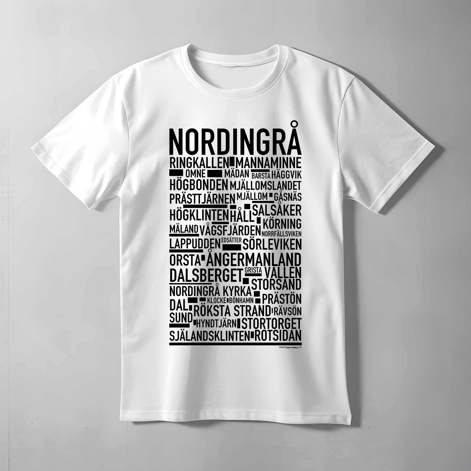 Den ikoniska T-shirten med texten "NORDINGRÅ" och namn på platser från denna pärla i Höga Kusten – känd för sina böljande höjder, djupa vikar och det unika världsarvslandskapet som lockar både naturälskare och kulturintresserade. En stilren T-shirt som låter dig bära med dig känslan av Nordingrå – där hav möter berg, och tradition möter tidlös skönhet. Tillverkad i mjuk, högkvalitativ bomull för en skön och behaglig känsla hela dagen.