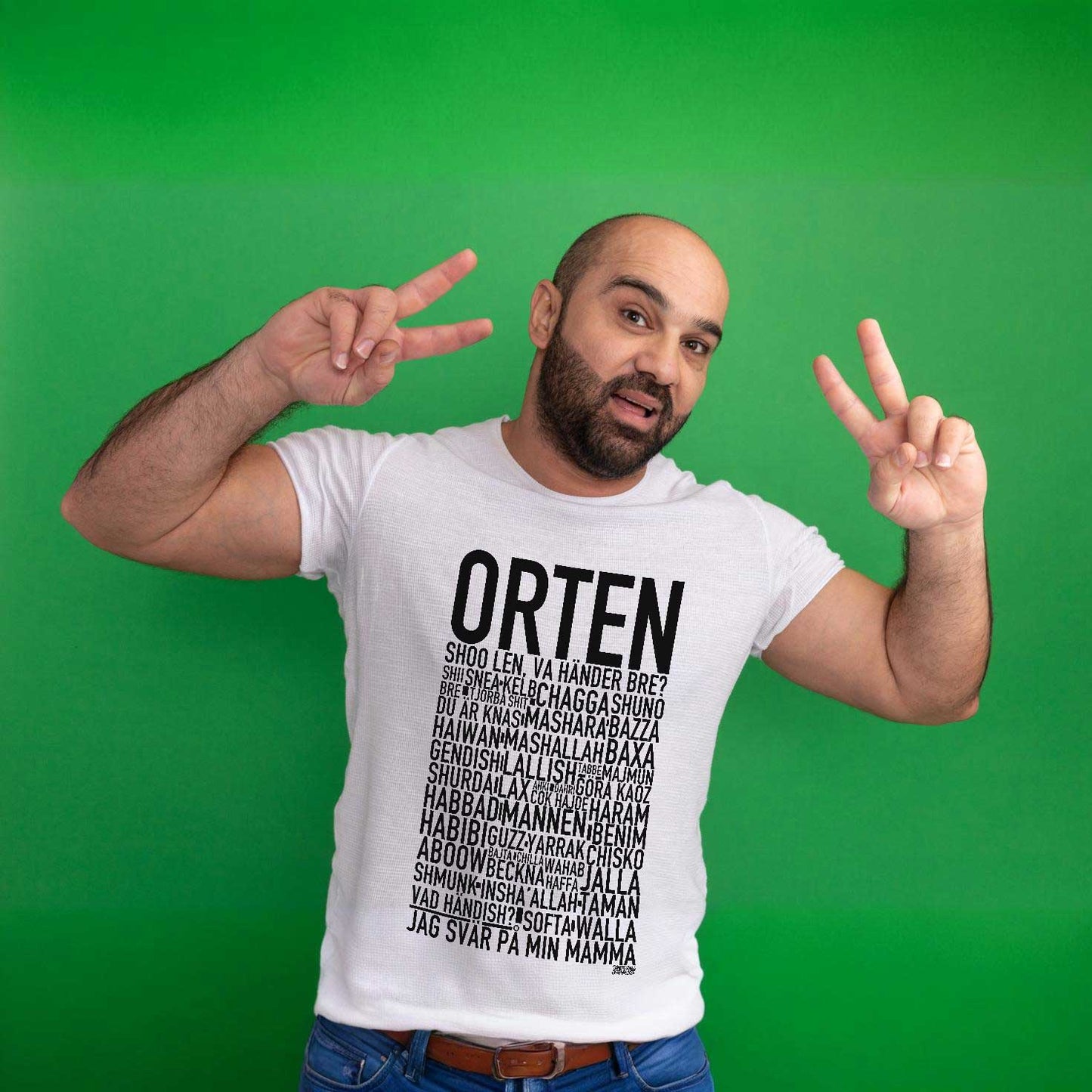 Abow! Här är T-shirten för alla guzzar & shunos i "ORTEN". Snackar du flytande eller bara leker? Den här tishan är för dig som lever uttrycken, som slänger in ett "walla" mitt i meningen utan att blinka. Ord med rötter från hela världen, en gnutta humor och maxad attityd. Det här är inte bara en T-shirt. Det är ett språktest. Jalla, visa vad du går för! Tillverkad i mjuk, högkvalitativ bomull för en bekväm känsla hela dagen.