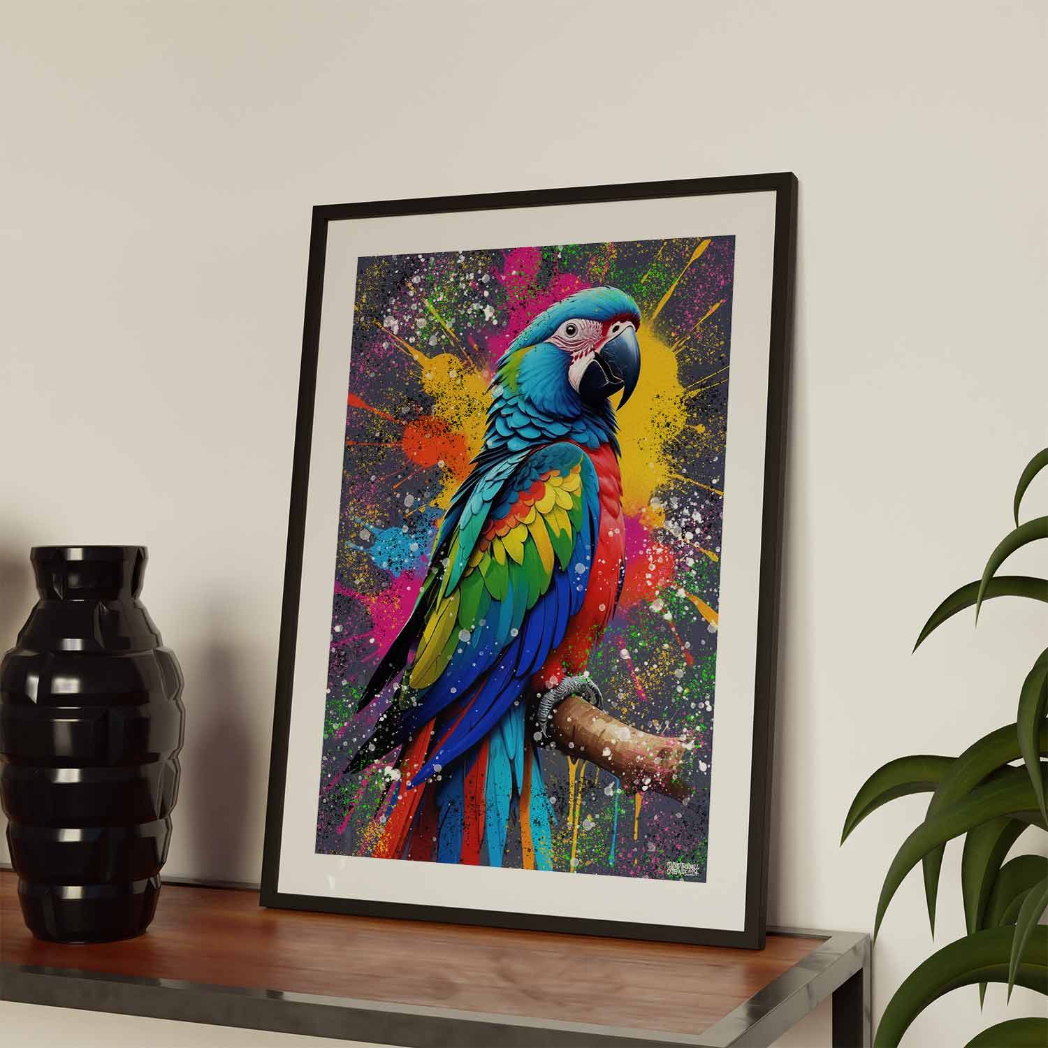 Låt rummet sprudla av färg och energi med denna livfulla poster föreställande en exotisk papegoja. Perfekt för barnrum, vardagsrum eller alla som älskar tropisk känsla och djur med attityd. Postern tillverkas på beställning på högkvalitativt papper och har en vit kant som snyggt ramar in motivet. Design av David Thornell Orrenvade 2024.
