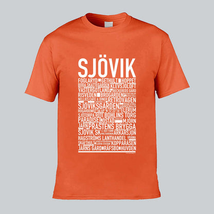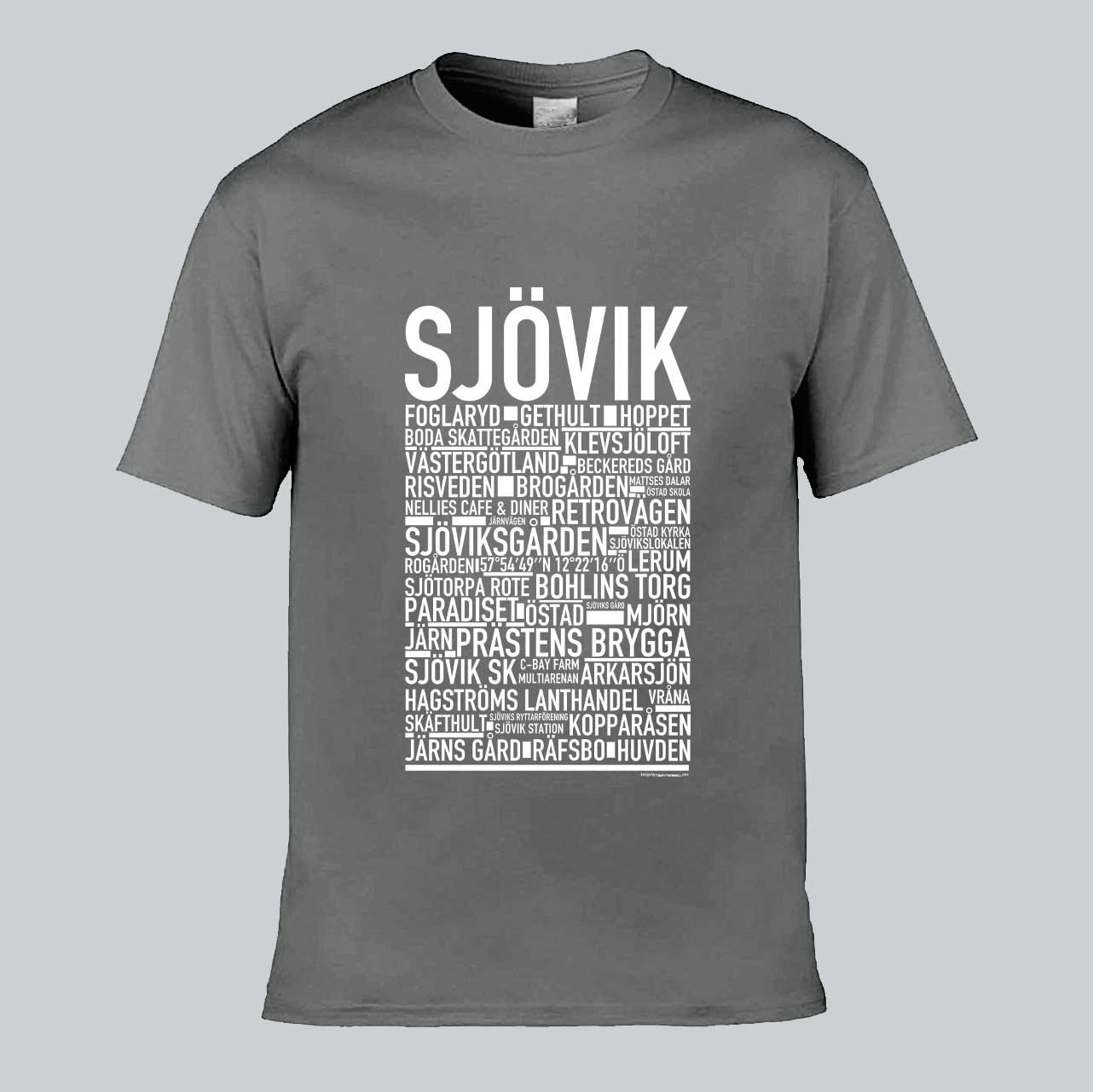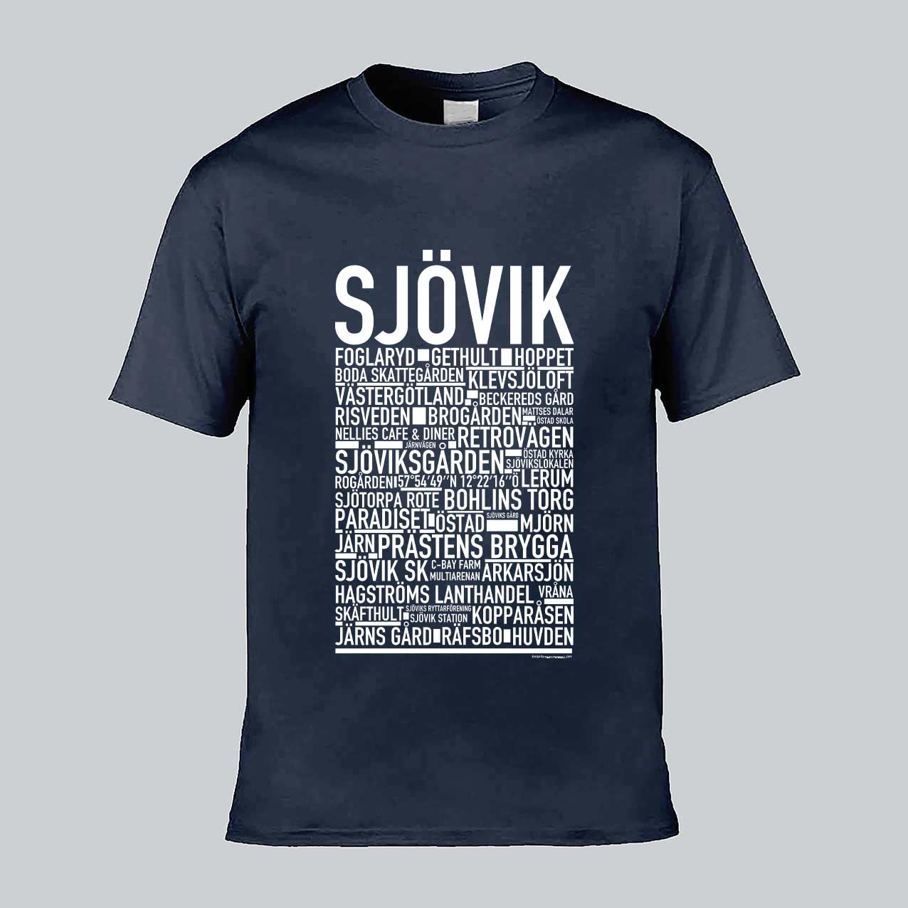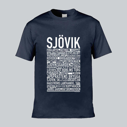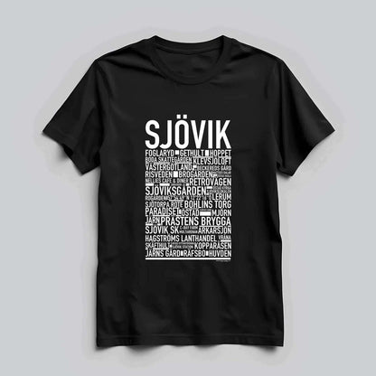 Den ikoniska T-shirten med texten "SJÖVIK" och namn på platser från denna rofyllda ort i Lerums kommun, känd för sin närhet till sjöar, vacker natur och starka lokalkänsla. Denna stilrena T-shirt ger en unik touch till din garderob och låter dig stolt visa upp din kärlek till Sjövik. Tillverkad i mjuk, högkvalitativ bomull för en behaglig känsla hela dagen.
