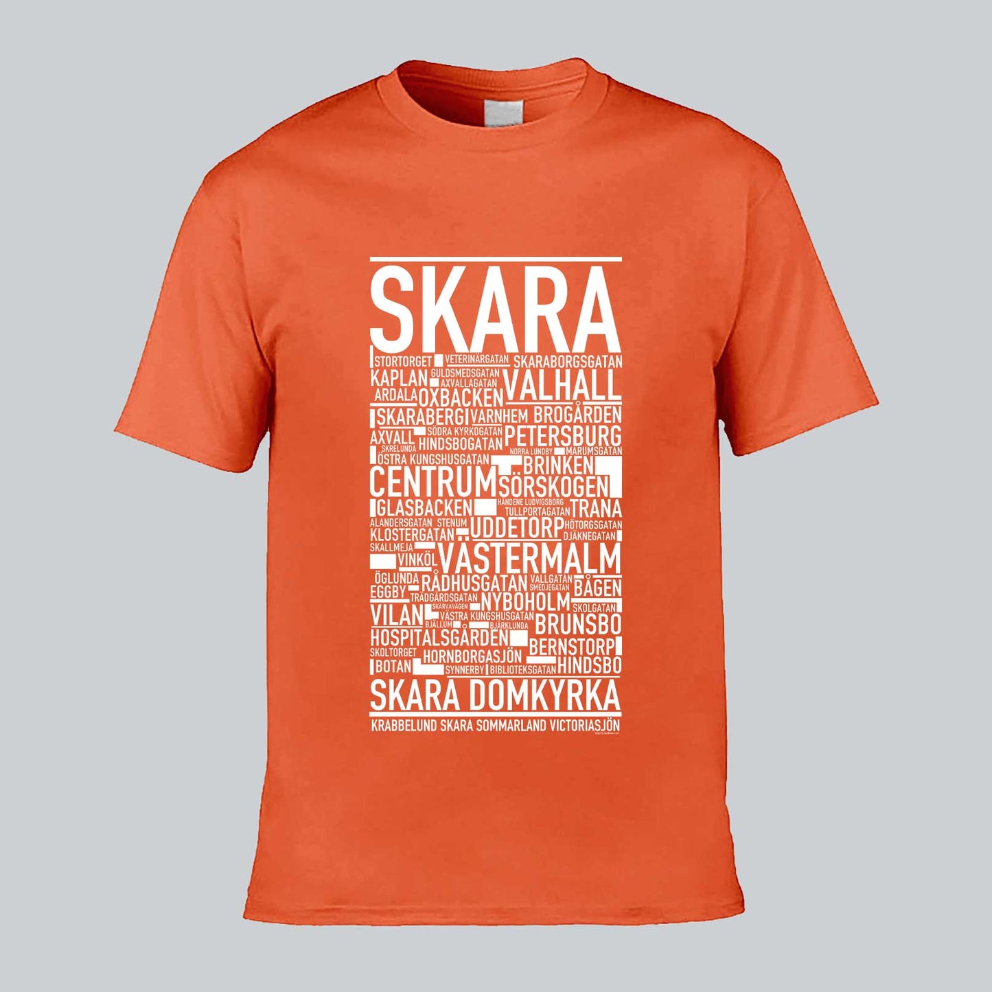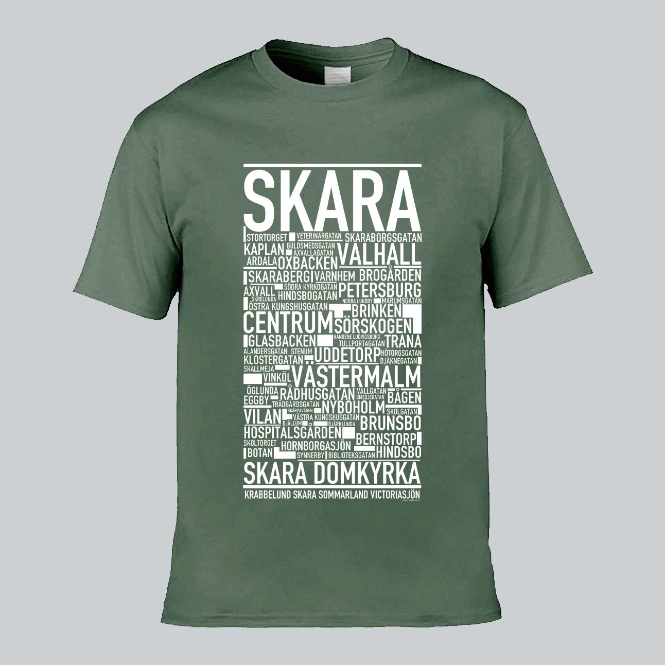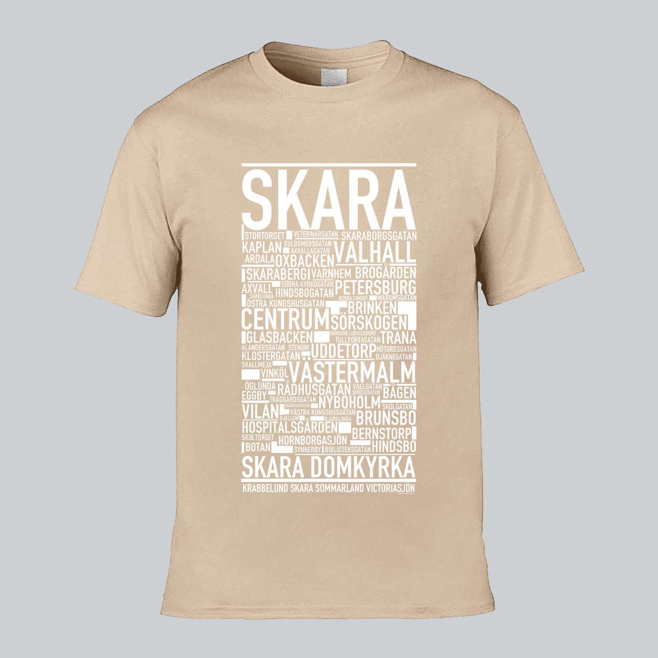 Den ikoniska T-shirten med texten "SKARA" och namn på platser från denna historiska västgötastad, känd för sin medeltida domkyrka, anrika skolor och närhet till både natur och kultur. Denna stilrena T-shirt ger en unik touch till din garderob och låter dig stolt visa upp din kärlek till Skara. Tillverkad i mjuk, högkvalitativ bomull för en behaglig känsla hela dagen.