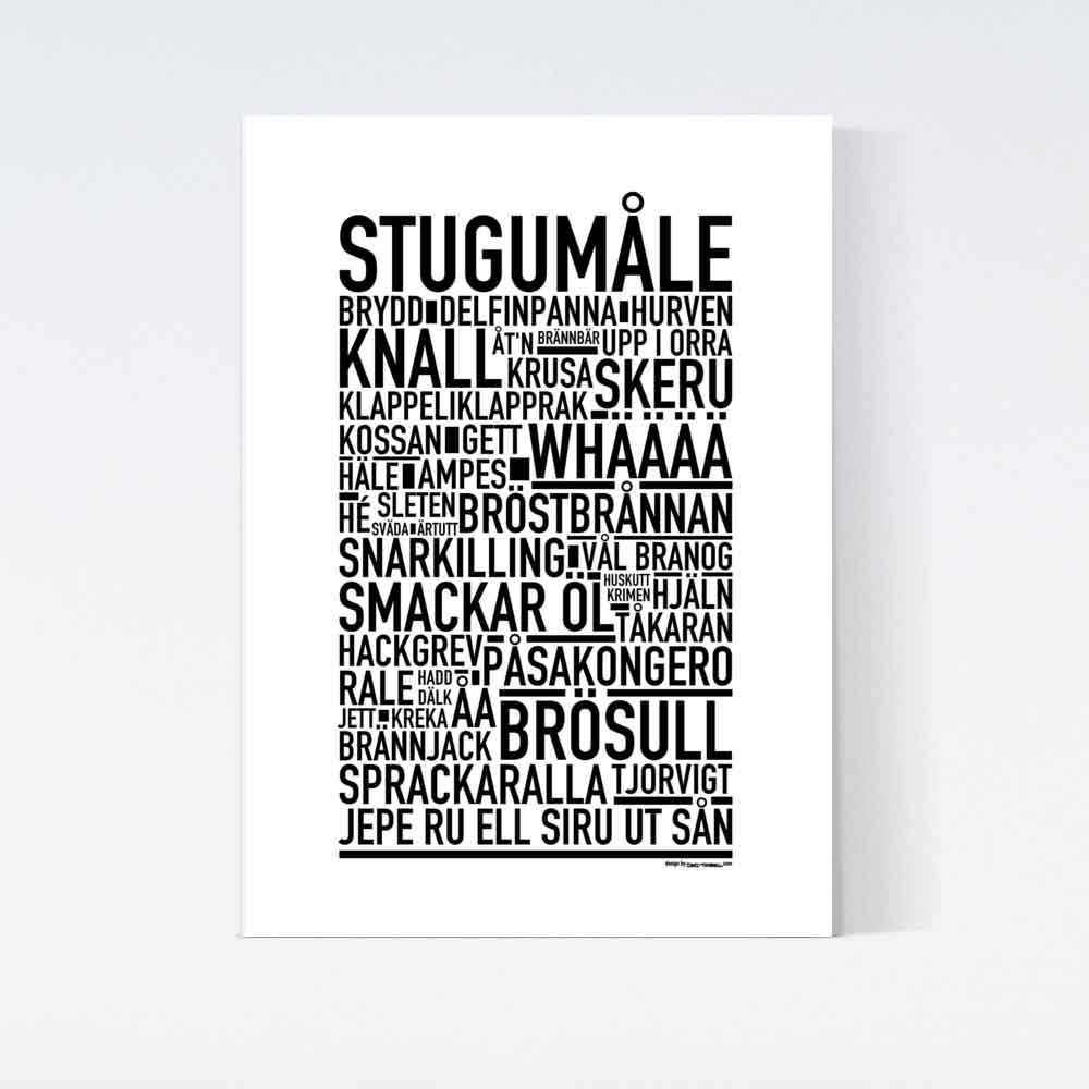 En stilren poster med texten "STUGUMÅLE", som hyllar den karaktäristiska och charmiga dialekten från Stugun. Perfekt för att ge ditt hem eller kontor en personlig och lokal touch. Postern tillverkas på beställning på högkvalitativt papper och har en vit kant som snyggt ramar in motivet.