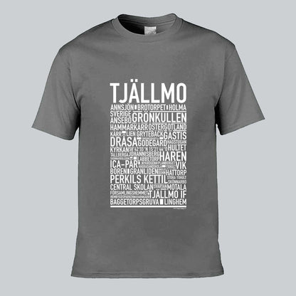 Den ikoniska T-shirten med texten "TJÄLLMO" och namn på platser från denna charmiga ort i Östergötland, känd för sin natursköna omgivning, närhet till sjöar och det varma lokala engagemanget. Denna stilrena T-shirt ger en unik touch till din garderob och låter dig stolt visa upp din kärlek till Tjällmo. Tillverkad i mjuk, högkvalitativ bomull för en behaglig känsla hela dagen.