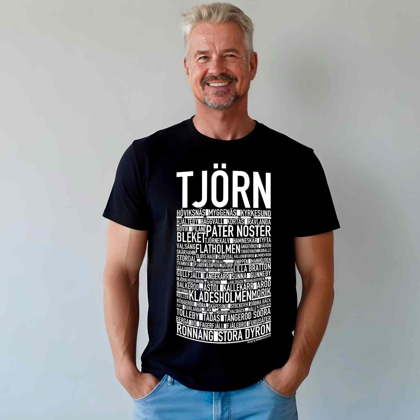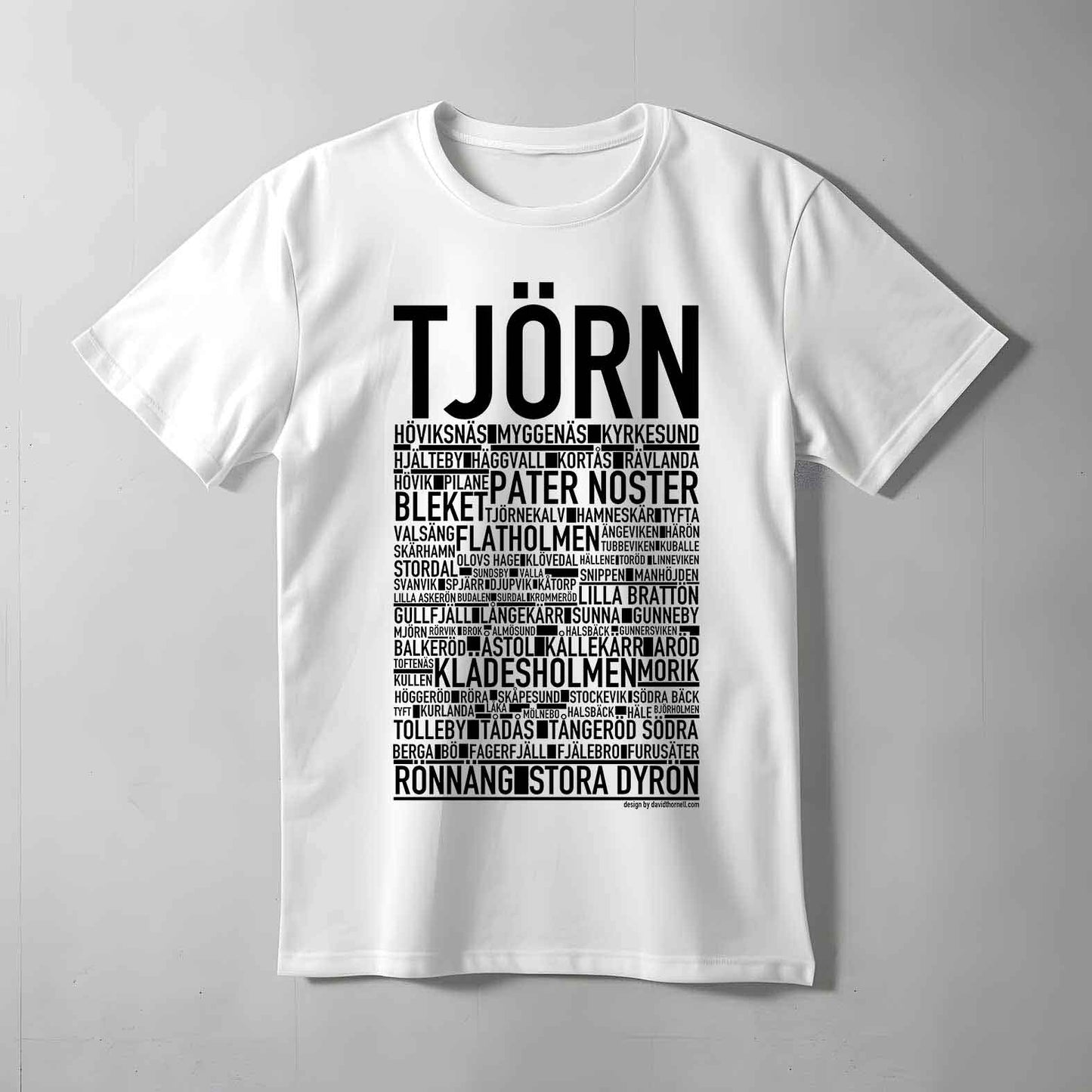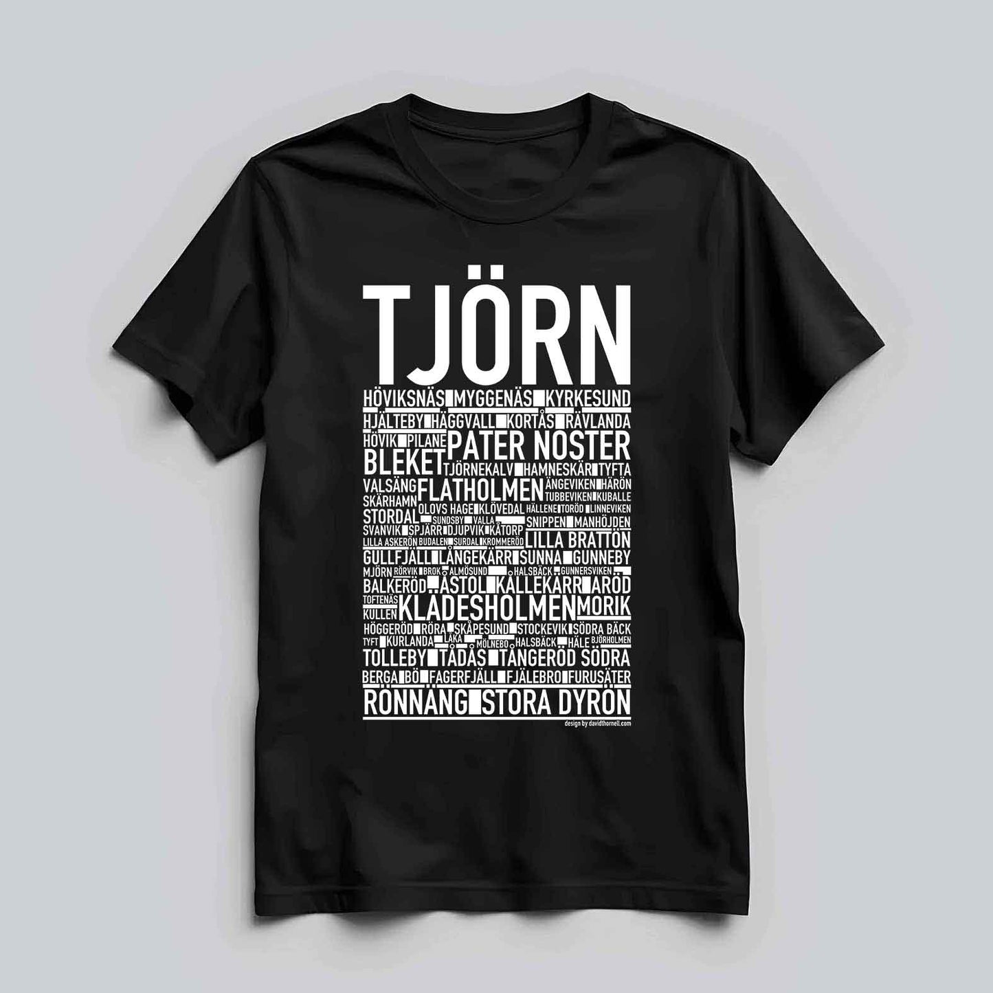 Den ikoniska T-shirten med texten "TJÖRN" och namn på platser från ö utanför Göteborg. Denna stilrena T-shirt ger en unik touch till din garderob och låter dig stolt visa upp din kärlek till Tjörn. Tillverkad i mjuk, högkvalitativ bomull för en behaglig känsla hela dagen.