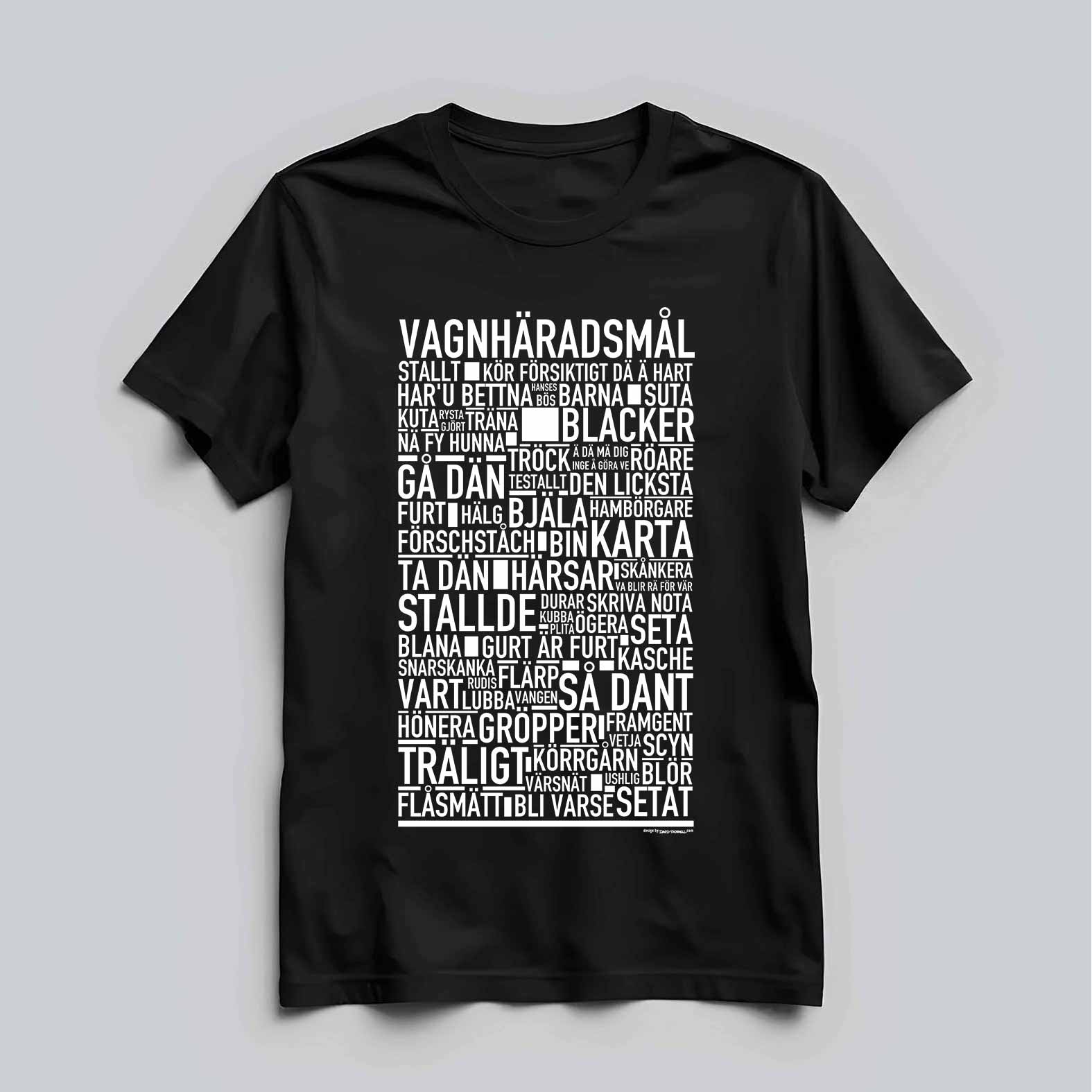 En stilren t-shirt med dialekten "VAGNHÄRADSMÅL", som hyllar den karaktäristiska och charmiga dialekten från Vagnhärad. Perfekt för att ge din outfit en personlig och lokal touch. Tillverkad i mjuk, högkvalitativ bomull för en bekväm känsla hela dagen.