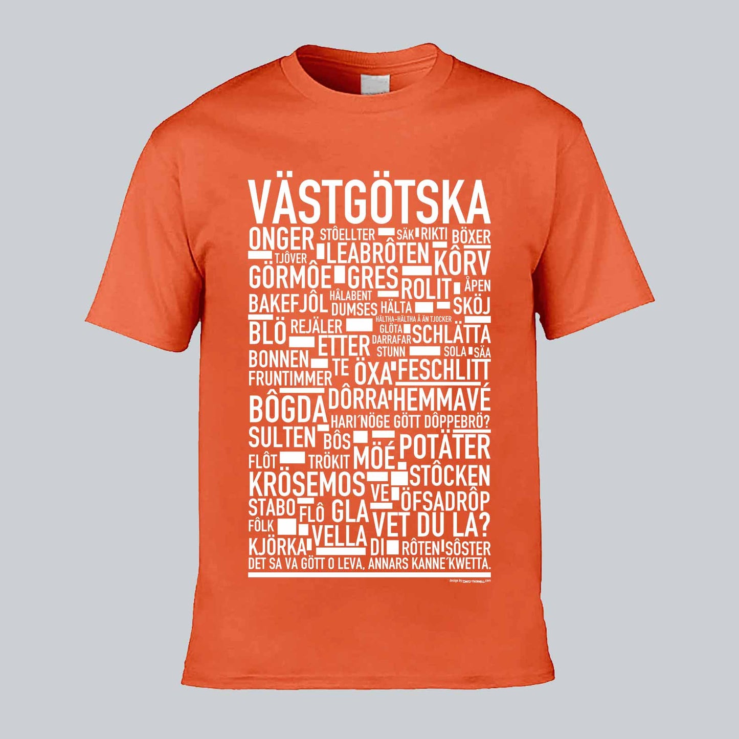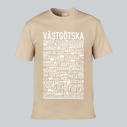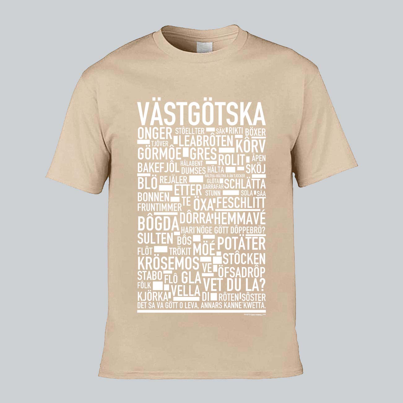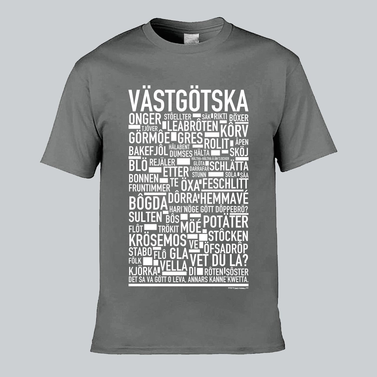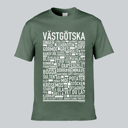 En T-shirt med dialekten 'VÄSTGÖTSKA' i stilren text – det perfekta plagget för dig som vill visa din kärlek till Västra Götaland med stolthet! Tillverkad i mjuk, högkvalitativ bomull för en bekväm känsla hela dagen. Oavsett om du är ute på äventyr eller bara vill bära en cool och bekväm T-shirt, är detta ett måste för alla som känner sig mest hemma i Västra Götalands underbar landskap.