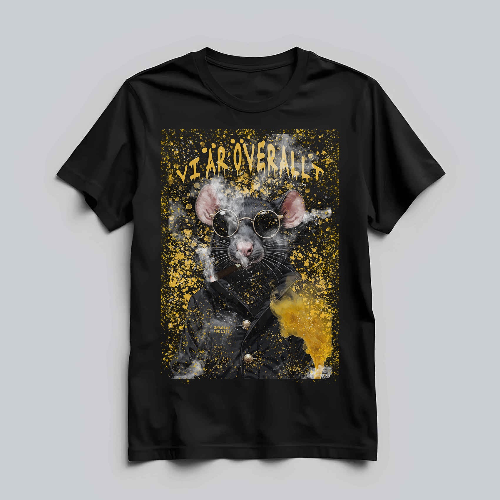 Låt denna tuffa, självsäkra gnagaren ta plats i ditt hem! Med sin cigarr i munnen och attityd som säger ”vi är överallt”, är den här designen perfekt för dig som gillar en kaxig, lekfull stil. De svarta och gula färgerna ger en sportig och energisk känsla utan att nämna några varumärken. Ett roligt och originellt motiv som väcker både skratt och uppmärksamhet.